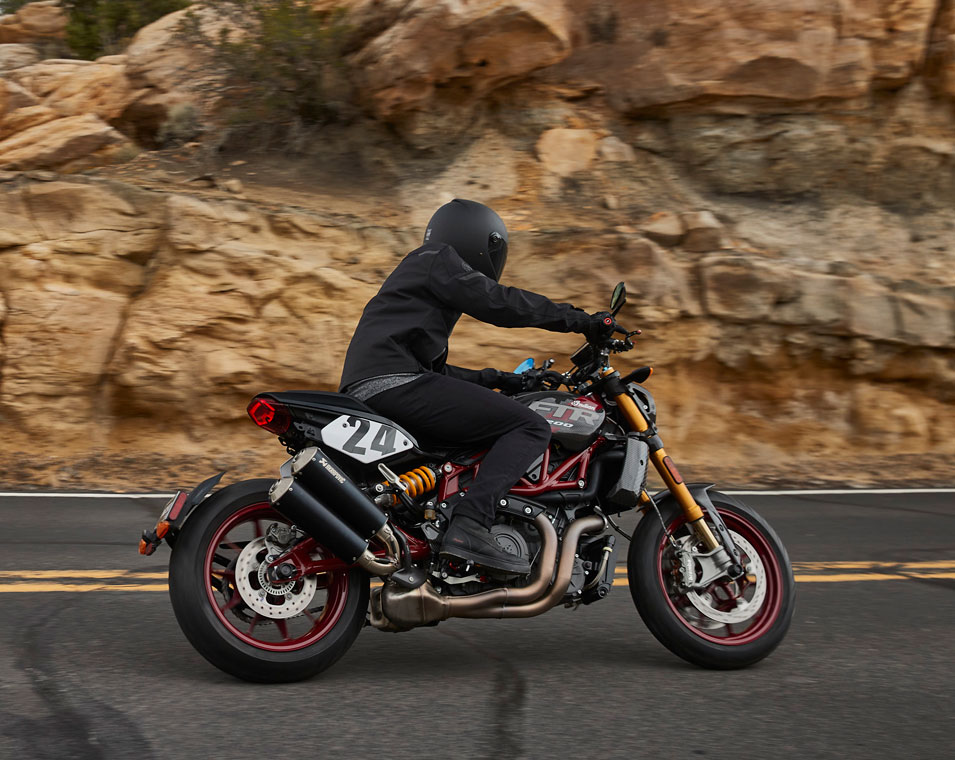 A unique liquid-cooled American V-twin is at the heart of what makes FTR remarkable. Turn up the sound to experience it.