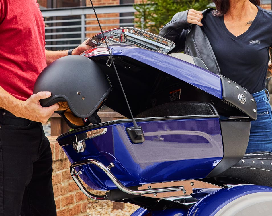 | Storage | Remote-Locking Hard Saddlebags & Trunk, Dash Compartment, 136+ Litres of Storage |